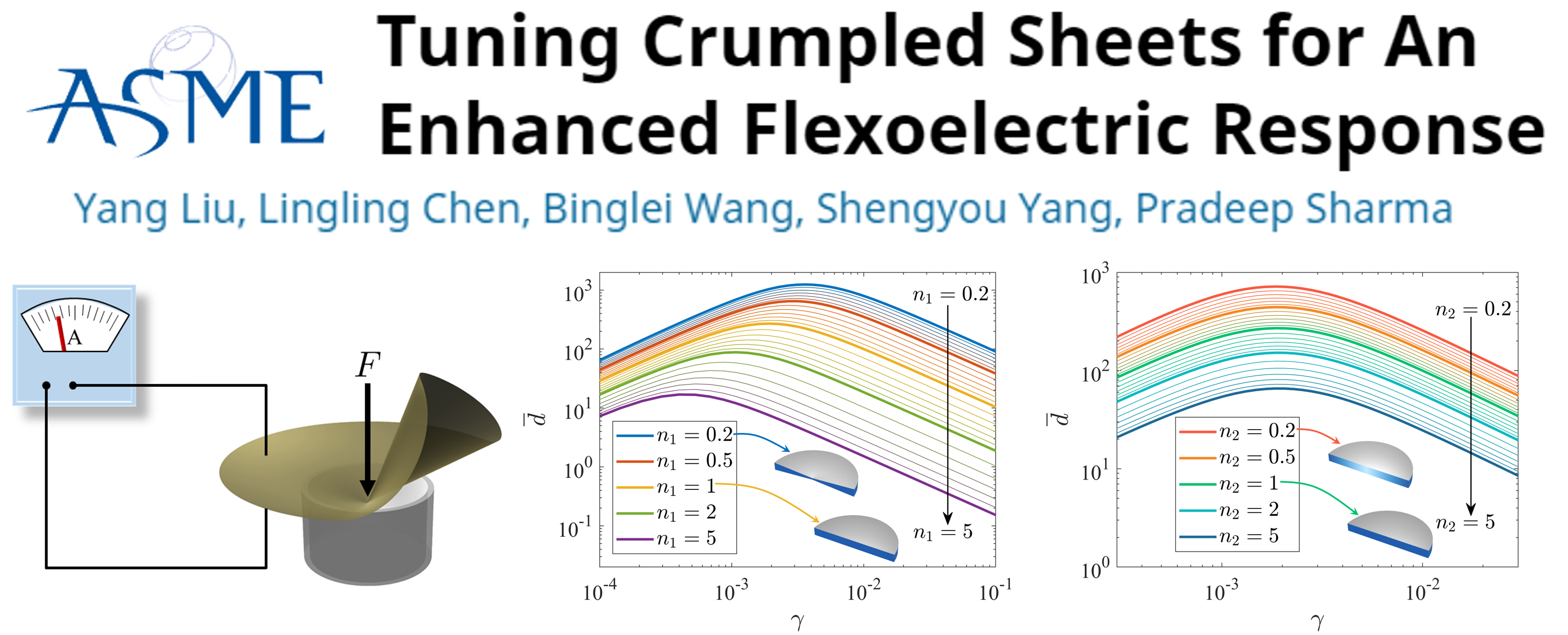 近期,163am银河线路工程力学系王炳雷和阳生有就揉皱结构挠曲电理论在固体力学领域权威期刊Journal of Applied Mechanics-Transactions of the ASME发表题为“Tuning Crumpled Sheets for An Enhanced Flexoelectric Response”的研究工作。王炳雷副教授与美国工程院院士、休斯顿大学机械工程系主任Pradeep Sharma教授为共同通讯作者,163am银河线路研究生刘洋为第一作者,163am银河线路为第一完成单位。