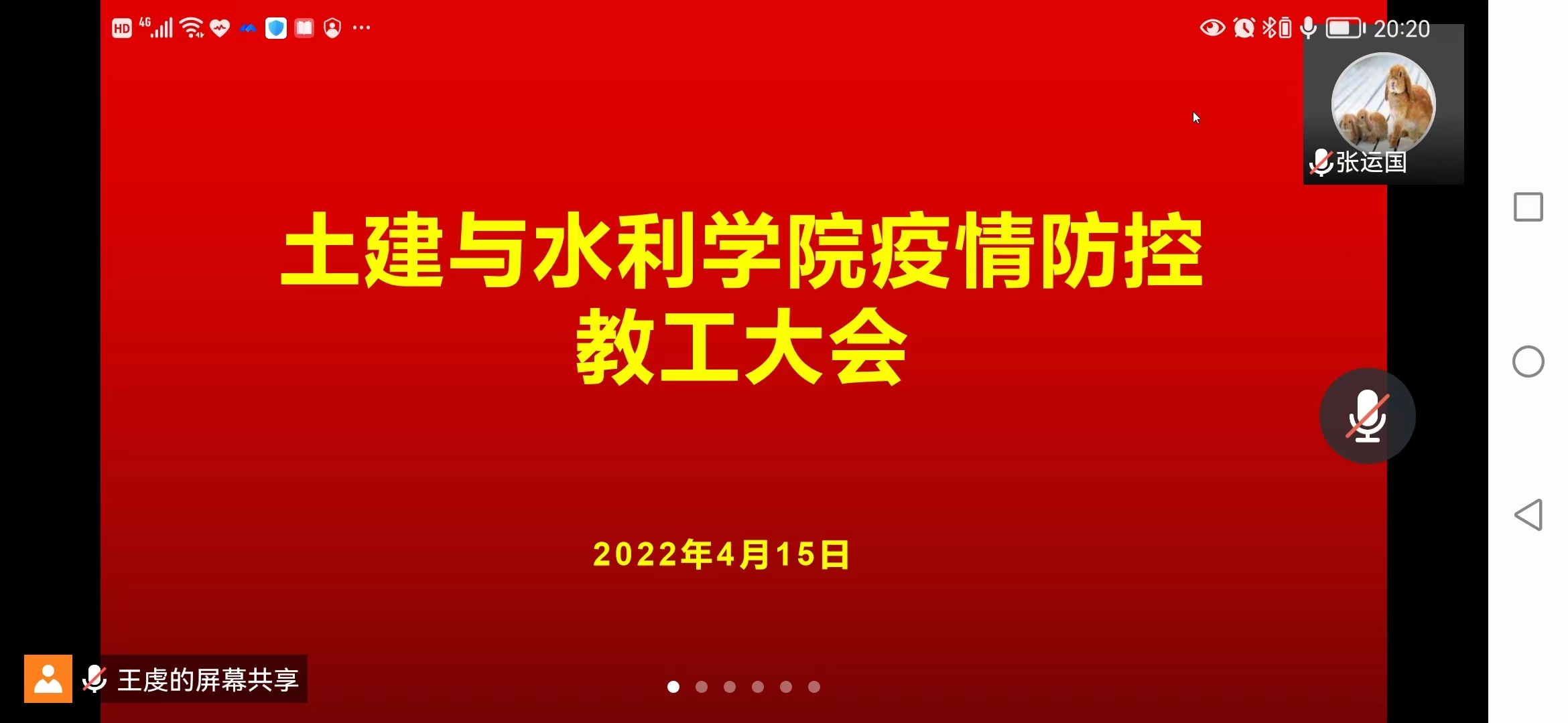 为统筹推进疫情防控和事业发展工作,4月15日晚,163am银河线路组织召开线上全院教工大会,传达全省教育系统疫情防控工作视频培训会议精神,学习《高等学校新冠肺炎疫情防控技术方案(第五版)》,学院领导班子全体成员出席会议,全体教工参加会议。院长张庆松主持会议。