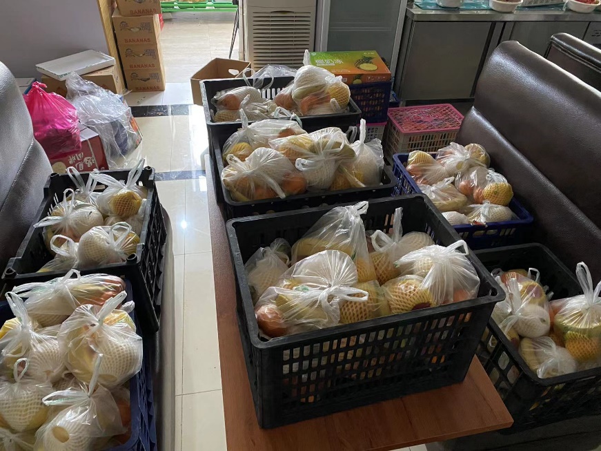2021级班长马骏凯与生活委员马贵亮带领各寝室长,将已订购的水果,按照不同的班级和人数一一进行分拣和打包,水利系2018级、2019级和2020级共三个年级的班委同学领取水果,并分发到每个班级每一位同学手中,转达了水利系全体老师对每一位本科生的关心关爱,并鼓励同学们在疫情封校期间,做好个人防护、保持乐观心态、提高学习效率、坚持体育锻炼。