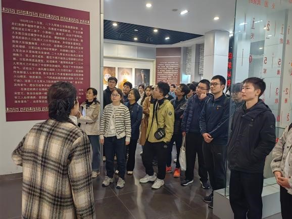 首站,师生党员来到张自忠将军纪念馆。这座为纪念张自忠将军殉国50周年而建的场馆,通过1200余件文物、400余幅图片及场景复原,完整呈现了将军从“儒将”到“抗日名将”的壮阔人生。在“长城抗战·喜峰口大捷”展区,泛黄的家书、带弹孔的军装、缴获的日军武器,无声诉说着将军“宁为战死鬼,不做亡国奴”的血性;“临沂大捷”沙盘前,讲解员动情讲述将军率部以劣势装备击溃日军精锐的细节,“三天三夜未合眼,大衣被弹片划破七个洞”的描述,让在场党员动容;最令人记忆深刻的是将军牺牲前写给副官的绝笔信:“我力战而死,自问对国家对民族可告无愧”。张自忠将军的铁血丹心,使党员们深刻理解了“今日之安,皆因昨日之牺牲;吾辈之责,当护明日之盛世。”