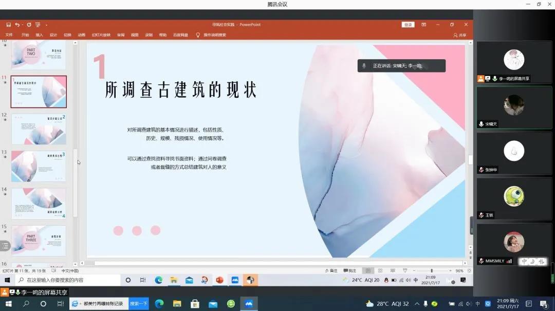 7月16日晚,163am银河线路“寻筑”社会实践调研团关于暑期实践活动开展进行线上会议讨论,调研团成员李一鸣、张王佳驹、王轶、张钟华、宋啸天参与本次调研启动仪式。