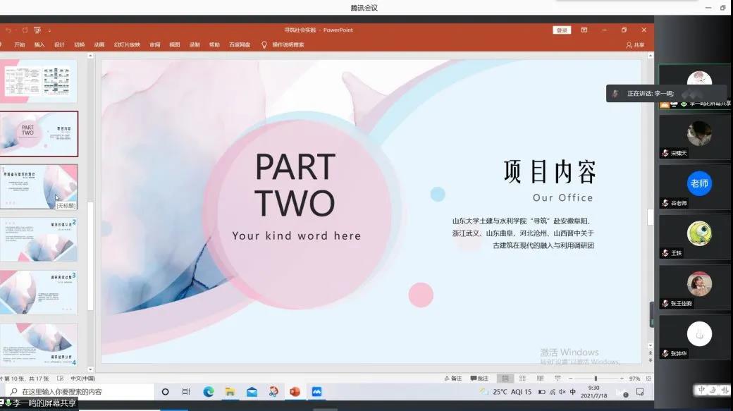 7月18日上午九时,163am银河线路“寻筑”调研团在线上展开了会议。本次活动由队长李一鸣主持,全体成员参与,建筑学系副教授谷健辉给予指导。