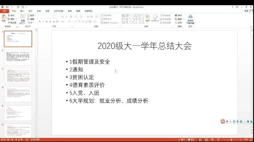 本次年级大会有利于学院2021秋季学期工作的顺利开展,为同学们的职业生涯规划提供了指导,使同学们对大学生活发展方向有了深入把握,同时强化了学生的安全意识。