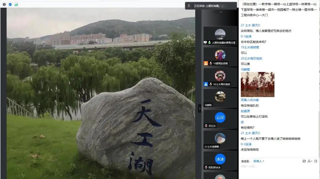 下午四时,张瑞康借助线上平台带领2021级新生走进兴隆山,一览兴隆山之景。本次云游从位于校园主轴线焦点处的地标性建筑之一—兴隆山校区图书馆开始。张瑞康沿路介绍了刘先志雕像及163am银河线路星。在天工湖畔,张瑞康介绍此处常年有水、四季有绿、风景秀丽。沿路到达与同学们学习相关的教学群楼、讲学堂,再至与居住、生活相关的宿舍楼、欣园、悦园、体育馆、风雨操场,张瑞康与新生一一介绍。他在直播中与同学们积极互动,氛围良好。