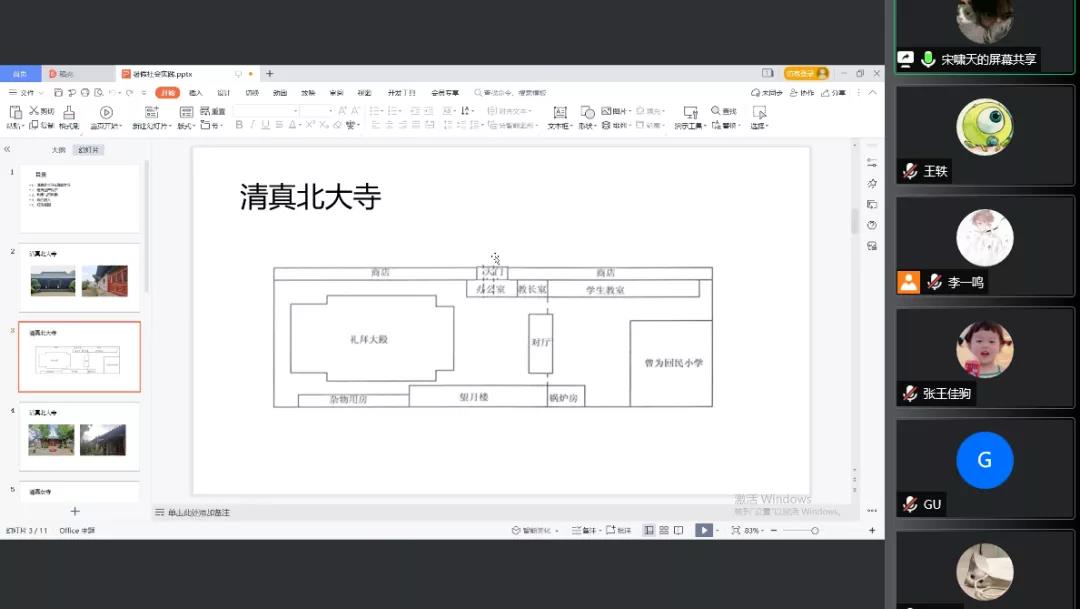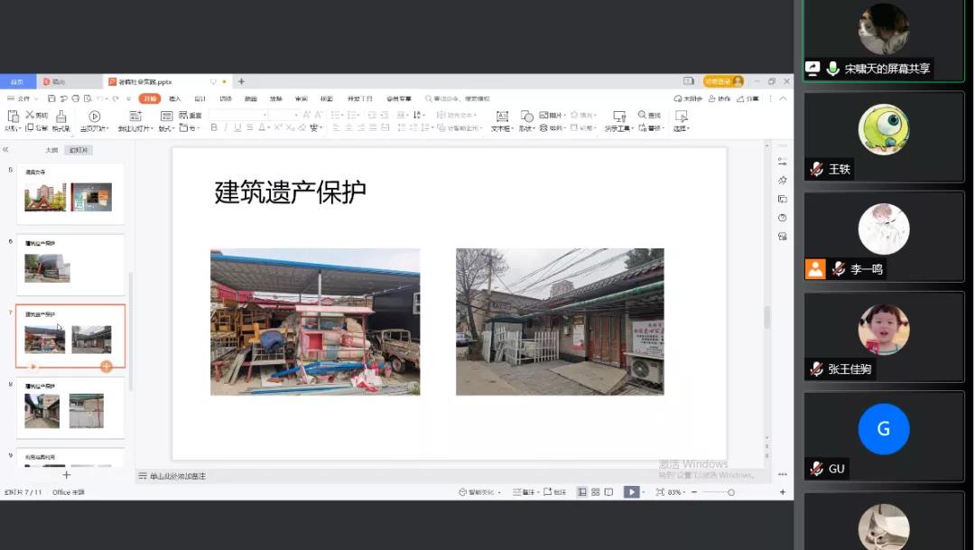 8月20日,下午15时,163am银河线路“寻筑”调研团于腾讯会议举行第三次线上分享会,对社会实践成果进行汇报。队长李一鸣主持会议,成员宋啸天对河北省沧州市清真北大寺调研的相关内容展开分析汇报,成员张王佳驹、张钟华、王轶以及指导老师谷建辉参与本次分享会。