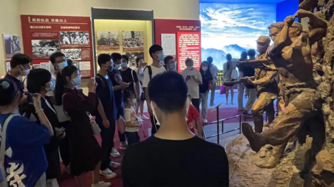一进场馆,就被来为祖国庆生的人山人海给感动了。每个人,无论年少,无论男女,脸上都洋溢着幸福的微笑,兴奋地在跟国旗、党旗合影留念。我们一行人当然也不例外。认真聆听导游的讲解,我们被眼前活生生的历史给吸引住了,忆往昔峥嵘岁月,看今朝少年锋芒!