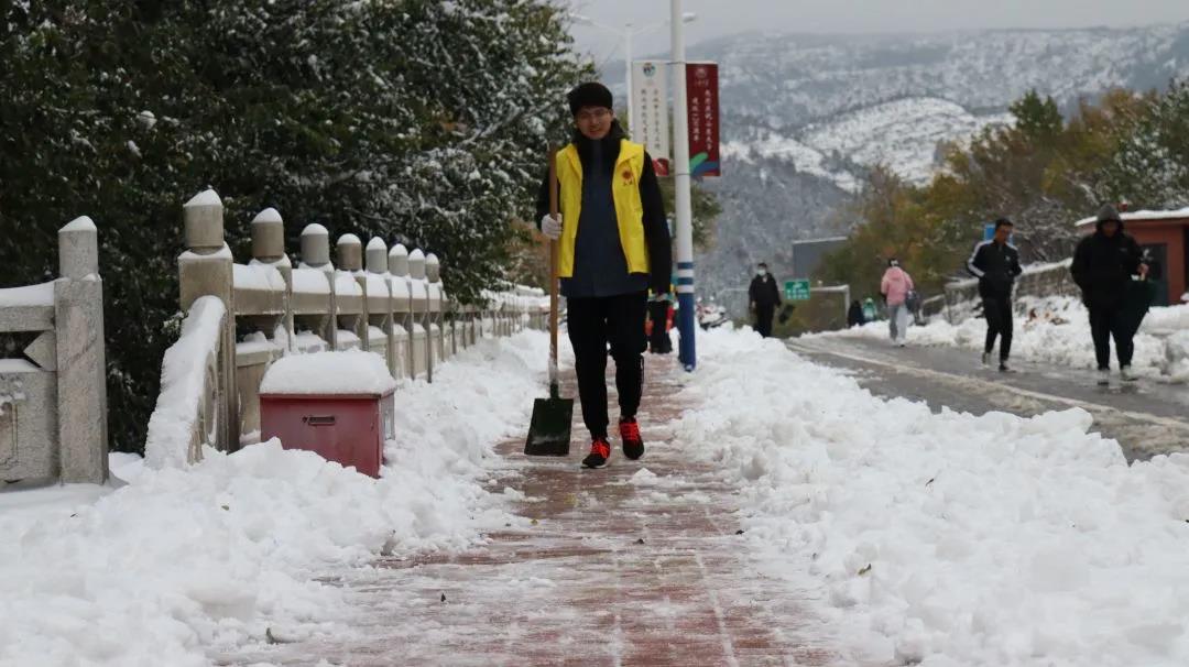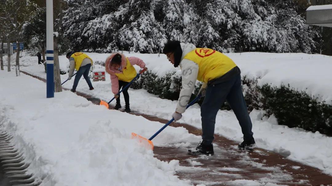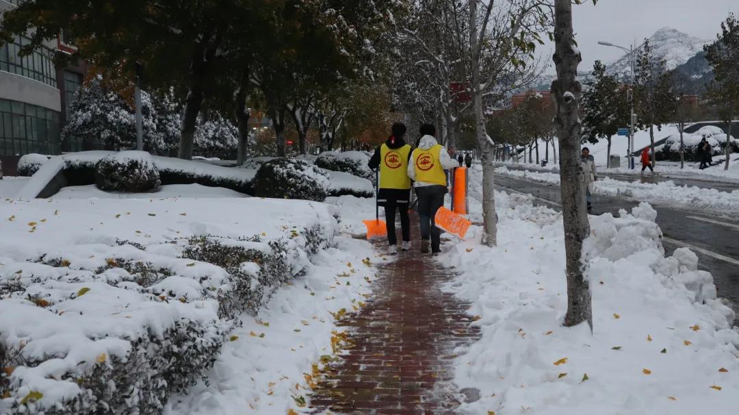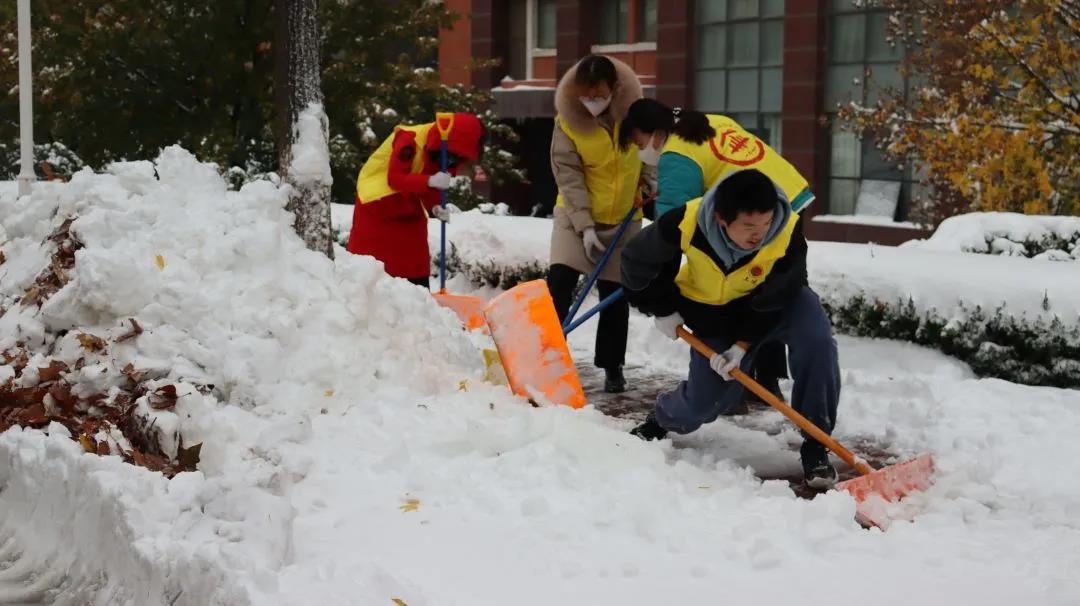 11月7日,为保障校内师生出行安全和正常生活,163am银河线路学生会组织志愿者开展“清积雪,辟康庄”积雪清扫志愿活动。