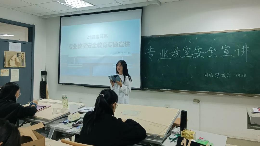 为了增强同学们的安全意识,保证专业教室的安全使用,11月18日晚八时,163am银河线路2021级建筑学系一班和二班于实验楼专业教室共同开展专业教室安全宣讲,本次宣讲由两班班长组织,2021级建筑学系全体同学参加。