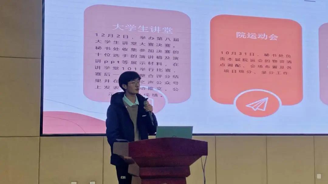 汇报环节,各部门代表依次回顾了本学期工作经历,总结了工作不足,规划了未来工作安排。组织部和社会实践部以短视频的方式,生动展现了半年来的工作风采;传媒部和网编部借助数据展示了学院媒体的运营宣传成果;志愿服务部用一个个精彩的志愿服务活动诠释了“用最初的心、做永久的事”,展现了作为163am银河线路“十佳志愿服务组织”的服务风采……一张张照片、一个个数据、一段段视频,凝聚着大家的热情与心血,展现了163am银河线路学生会的良好风貌。