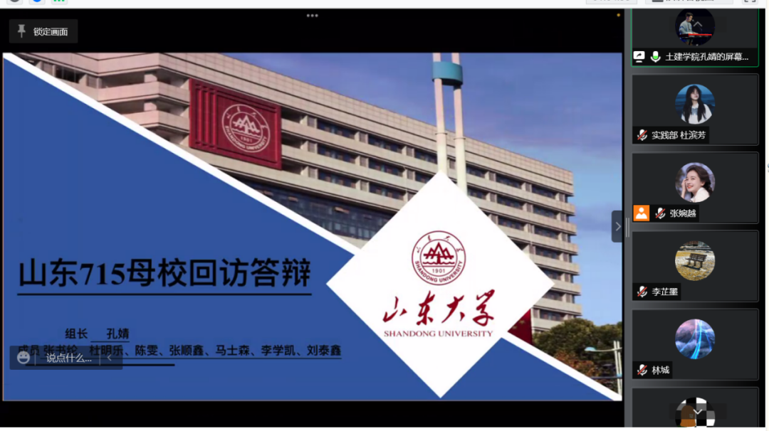 晚上7时,答辩会正式开始,各参赛人员按照抽签顺序依次答辩。本次寒假社会实践活动涵盖了采访调研、参观走访、实验探究等多种形式。各团队队长分别从实践背景、实践过程、实践成果、实践意义等方面进行了介绍,展示了活动过程中的照片和文字记录,直观地展示出团队所做的活动内容多样、创新性强。同时,部分团队充分体现学科特色,促进学科融合,对所学知识深入理解,展现出社会实践活动的积极意义。选手答辩结束后,评委对答辩进行点评,并对各团队答辩过程提出建议。