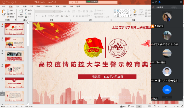 本次研究生开展的主题团日活动再次提高了大家对于疫情防控下严格遵守学校规定的思想认识,引导全体学生牢固树立大局意识、责任意识,帮助各位团员了解学校防疫有关规定和丰富校园生活的动作,为大家顺利、安全度过校园疫情封控时期提供了信息渠道和心理支撑。