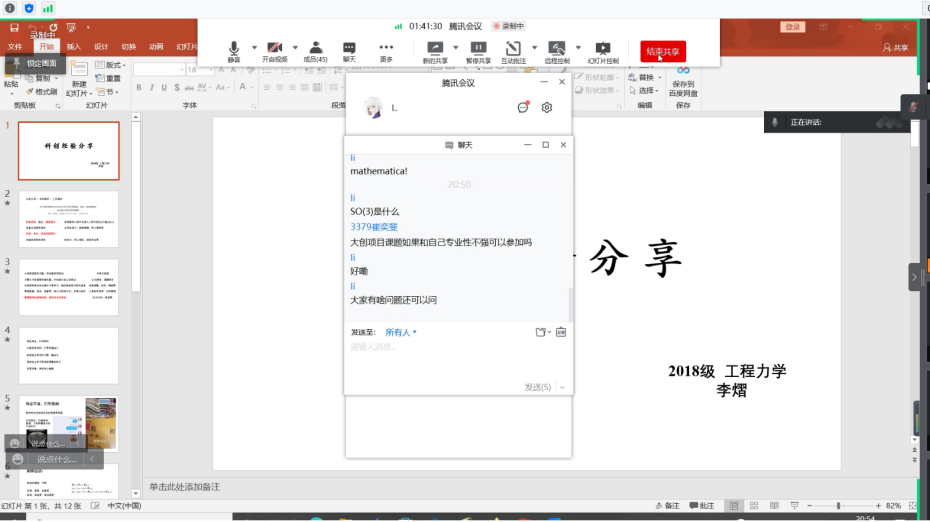 为帮助同学们更好地完成大学生创新创业训练项目立项及后续推进工作,5月1日晚七时,163am银河线路于线上开展大学生创新创业训练项目经验分享会。本次活动由学科部成员张仕龙主持,2018级工程力学系李浩隆、李熠参与分享经验。
