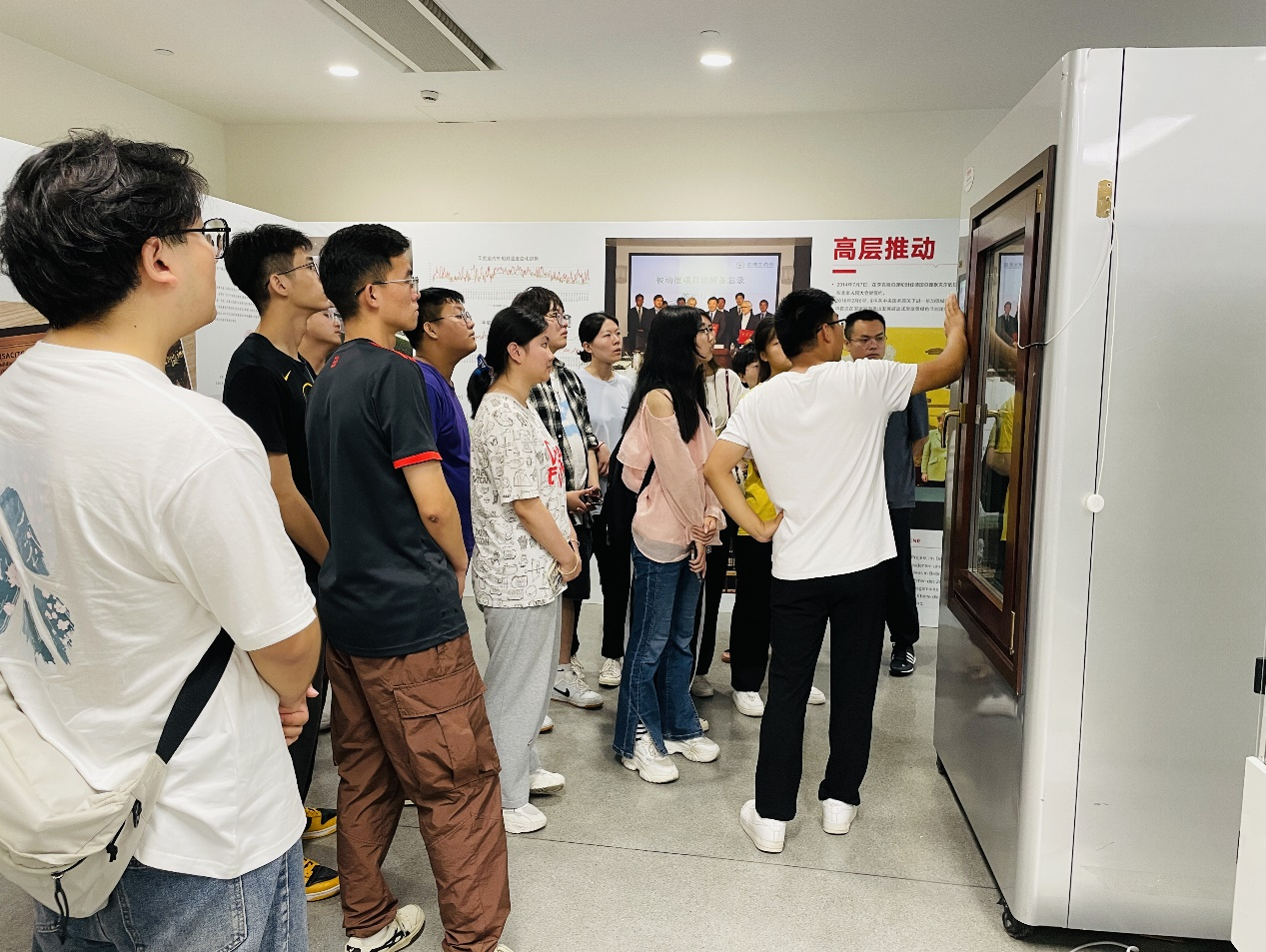 参观工程项目,实现学以致用。在荣华建设集团副总工程师兼研发部总监李海生和董事长秘书、办公室副主任周琳翔的陪同下,“荣华班”成员先后参观中英商贸酒店、中德生态园被动房体验中心、万科城望云起项目等集团项目。同学们在中英商贸酒店和中德生态园被动房体验中心,亲身体验到恒温恒湿恒氧恒洁的舒适环境,跟随项目负责人学习被动式超低能耗建筑的原理、先进技术和施工细节,树立绿色、节能、环保建筑的意识。同学们进入万科城望云起项目施工现场,通过建筑内部的建造细节了解装配式建筑技术。随后“荣华班”成员参观了荣华建科装配式工厂,深入了解装配式建筑构件的加工过程和养护过程,让同学们对装配式建筑从无到有的全环节有了整体的认知。