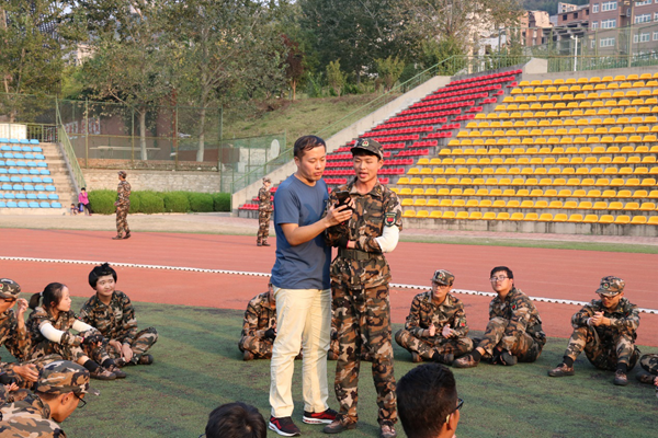 学院首先展开应急救护技能训练,通过现场指导实践帮助新生掌握急救知识,有助于提高新生的安全防范意识以及自救、救人的素质和能力,从而引导新生培养关爱自身、关怀他人的美好品质。营内拔河比赛则最能考验连队的团结协作能力,有助于强化新生的团队意识。在教官的带领和老师的指挥下,十六连的同学们拿出拼搏精神,拼尽全力,将努力拧成一股绳。军训团还举办了主题演讲比赛给思想,为新生提供了广阔的展示平台,新生侃侃而谈、意气风发,讲述自己眼中的党的十九大中国梦,介绍他们对青年担当的理解,畅想少年强国之路。营内的合唱比赛使新生们感受到山大校歌的独特魅力,也教会同学们用歌声展现浩然之气,用雄壮彰显中国军魂。军训中,各营还举行了紧急消防演练活动,通过模拟火场疏散和逃生演练,指导新生在今后的学习生活中,树立安全第一的意识,做好火灾防范工作,不断提高突发灾害下的自救能力,从而更好地推进平安校园建设。由18级辅导员杨浩主持的心理健康辅导讲座帮助新生尽快适应大学生活,从多个方面对新生进行了开导和建议,有利于新生的自我认识和大学生涯规划。新生入馆教育帮助新生更快了解学校图书馆常识和检索借阅使用规范,体现了学校三全育人、为学生服务的理念。在素质拓展与团队辅导训练中,指导员与学生会体育部组织多项活动,既为军训带来了更多欢乐,也潜移默化地强化了新生的团队协作能力,提升各方面素质。
