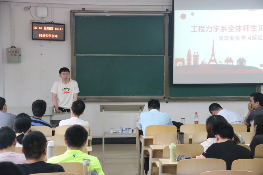 除了保研之外,工程力学系本科毕业生们还分享了自己的考研经验。通过考研进入上海交大的高一鸣,提醒同学们不同学校考研政策可能不同。同样考入上海交大的张凤,介绍了考研数学的学习方法,同时建议同学们找一个研友一起努力,不仅可以提高学习效率,也可以缓解考研压力。曾经去哈尔滨工业大学交流学习的金言涵根据自身经历介绍了浙江大学的考研政策、具体的考试内容及专业课程学习等。随后,李志相和赵鑫就北京航空航天大学的各项政策和自己的考研经历进行了分享,同时还提到了身体健康的重要性。参加中科院力学所夏令营并成功通过考试的赵坤为同学们介绍了夏令营的重要意义。时浩天则分享了自己信息收集、自我约束和自我检测三种方法,这些技巧解决了基础不扎实的问题,帮助他成功考取了心仪大学的研究生,也给同学们带来了启发。